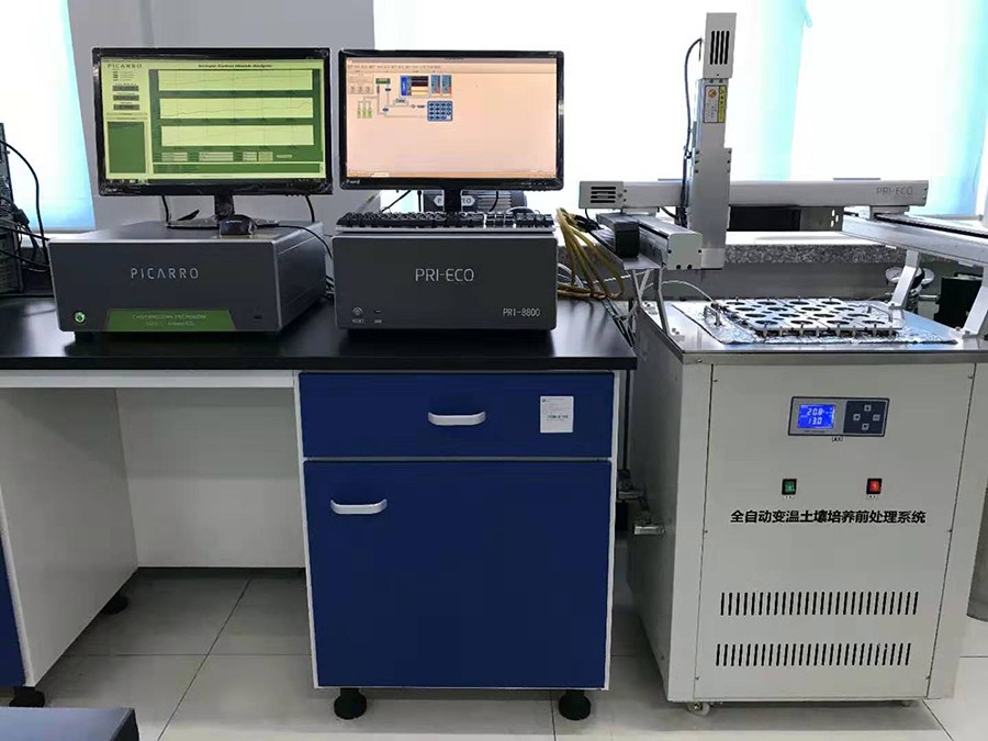 為了研究在凍融條件下各個(gè)因素對(duì)碳礦化的單個(gè)影響和交互作用,東北地理所進(jìn)行了“凍融條件下土壤有機(jī)碳礦化的研究”實(shí)驗(yàn)。此次實(shí)驗(yàn)采用了北京普瑞億科科技有限公司和中國(guó)科學(xué)院地理科學(xué)與資源研究所合作研發(fā)的PRI-8800全自動(dòng)變溫土壤培養(yǎng)前處理裝置,通過(guò)PRI-8800實(shí)時(shí)監(jiān)測(cè)CO2排放,進(jìn)而可以發(fā)現(xiàn)CO2在短時(shí)間內(nèi)的變化,在此之前這一直是難以攻克的技術(shù)壁壘。