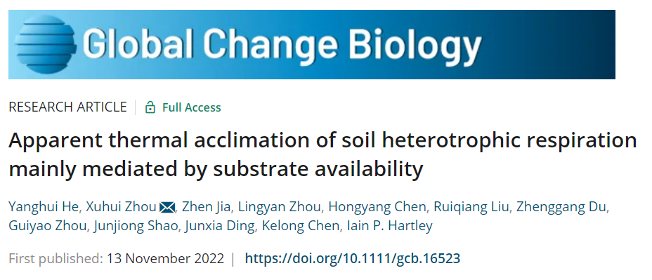 相關(guān)論文信息:He Y, Zhou X, Jia Z, et al. Apparent thermal acclimation of soil heterotrophic respiration mainly mediated by substrate availability[J]. Global Change Biology, 2022.