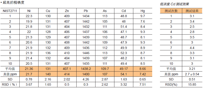 - 一鍵測試,快速完成近40種元素的分析,覆蓋標(biāo)準(zhǔn)要求的全部重金屬元素
