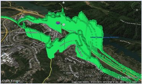 綠色表示數(shù)小時(shí)內(nèi)反復(fù)檢測的純甲烷羽流圖,該地區(qū)位于垃圾填埋場附近,明確的排除了天然氣的來源。