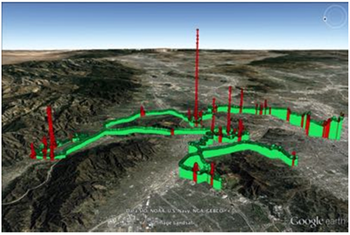 通過同時(shí),相關(guān)的乙烷和甲烷濃度檢測,發(fā)現(xiàn)超過24個(gè)天然氣泄漏點(diǎn)(紅色)。