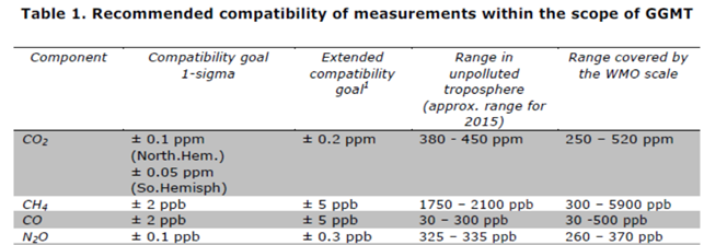 附:WMO 大氣本地站 CO CO2 CH4 N2O 觀測精度要求